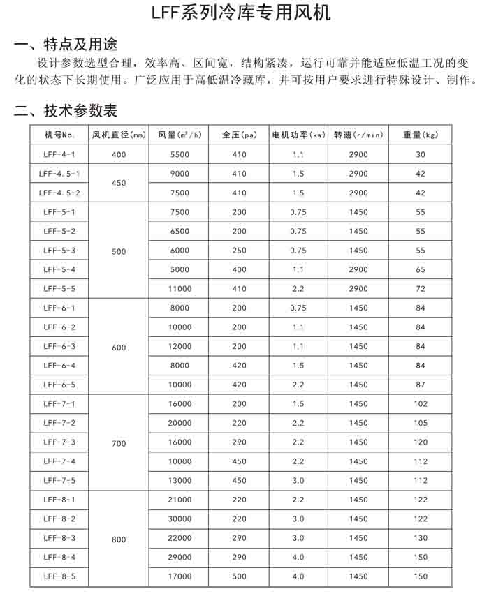 八、LFF 系列冷庫專用風機
