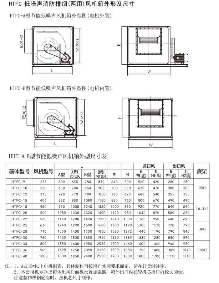 一、HTFC(DT)-I、II、V 系列低噪聲消防排煙(兩用)風(fēng)機(jī)箱